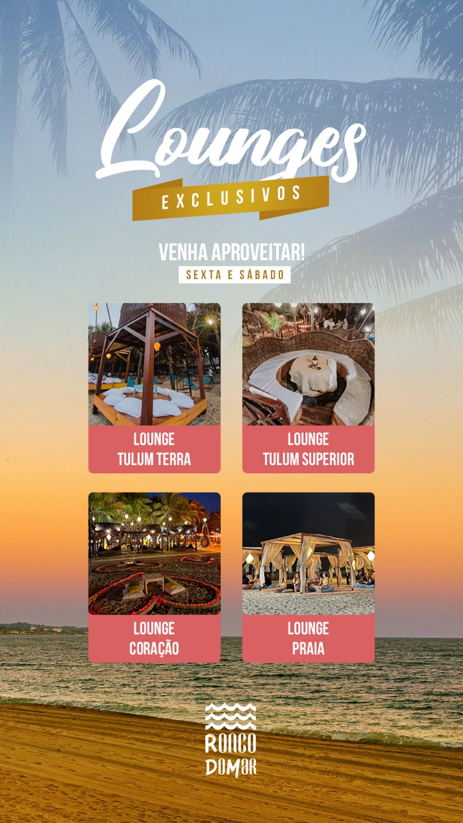 A RESERVA É EXCLUSIVA PARA O LOUNGE E A DATA ESCOLHIDA (NÃO TROCAMOS LOUNGES);